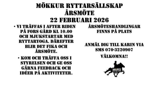 Mökkur Ryttarsällskap verkar för alla sina medlemmar och vi bjuder nu in till en medlemsdag tillsammans med FRS där vi kan träffas, prata om framtiden och även få möjlighet att ta till oss lite nyttiga kunskaper.